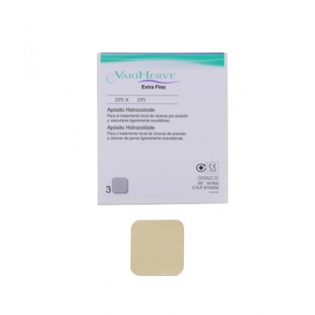 Varihesive Extrafino Apósito Estéril 15x15 cm es un apósito de grosor reducido que se aplica sobre úlceras y heridas secas o con exudado leve. Sirve para reducir la pérdida de la piel a causa de la fricción y favorecer el proceso de cicatrización.